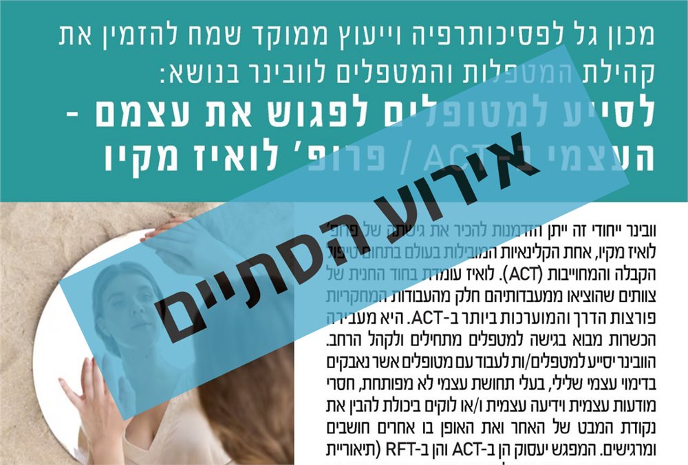 סדרת מפגשים מקוונים המציעה גישות, מודלים והתערבויות שהתגבשו בשדה הטיפולי במענה למגוון קשיים ומצוקות נפשיות, ומטרתה להנגיש לקהילה המקצועית ידע מקצועי שהתפתח סביב אתגרים טיפוליים ספציפיים.