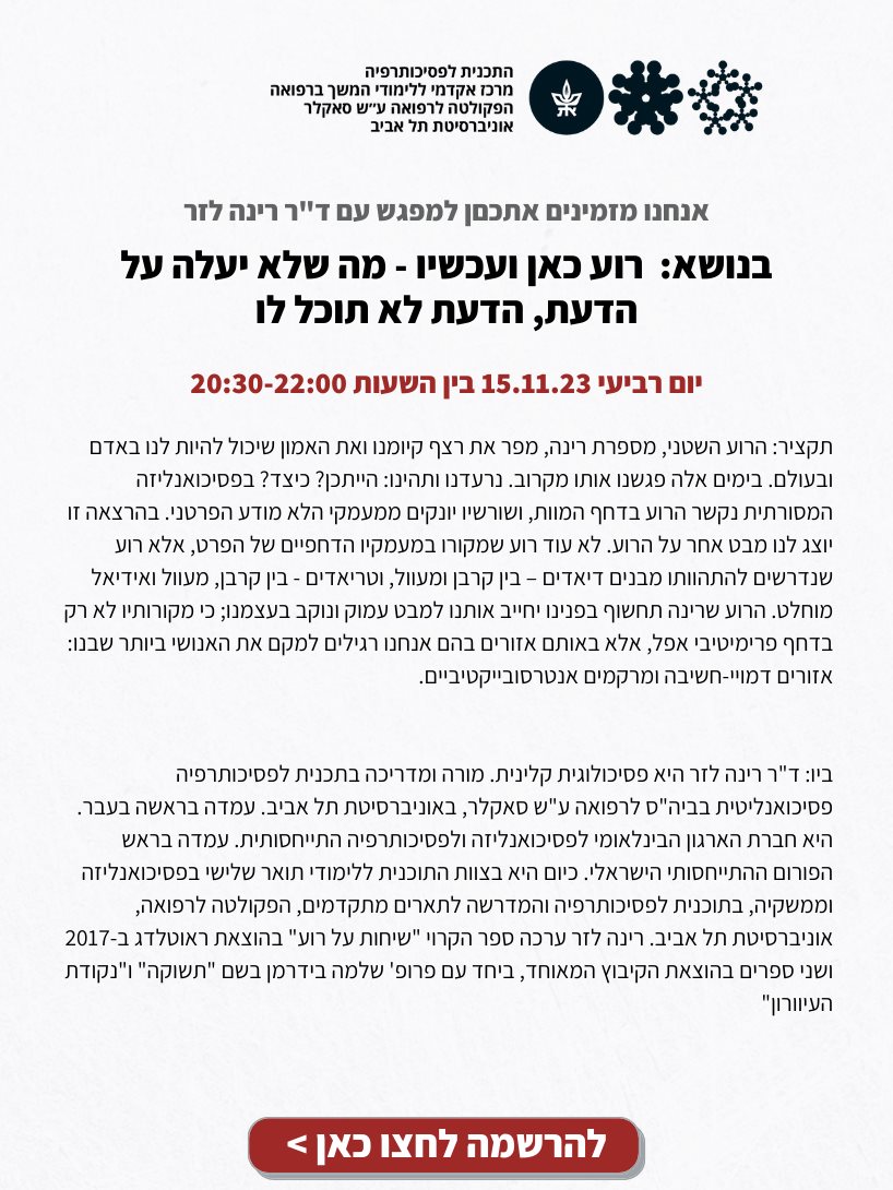 מקוון בשפה האנגלית | 07.12.2025 | יום ראשון | 19:30-21:00