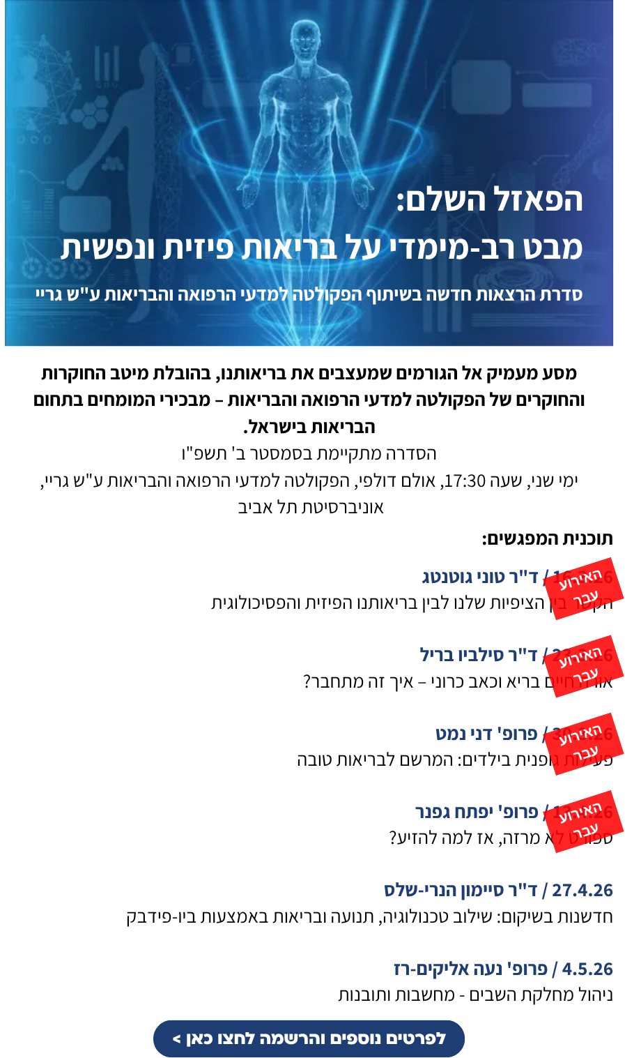 הפאזל השלם: מבט רב-מימדי על בריאות פיזית ונפשית - סדרת הרצאות