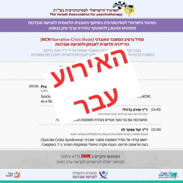 סדרת מפגשים מקוונים המציעה גישות, מודלים והתערבויות שהתגבשו בשדה הטיפולי במענה למגוון קשיים ומצוקות נפשיות, ומטרתה להנגיש לקהילה המקצועית ידע מקצועי שהתפתח סביב אתגרים טיפוליים ספציפיים.