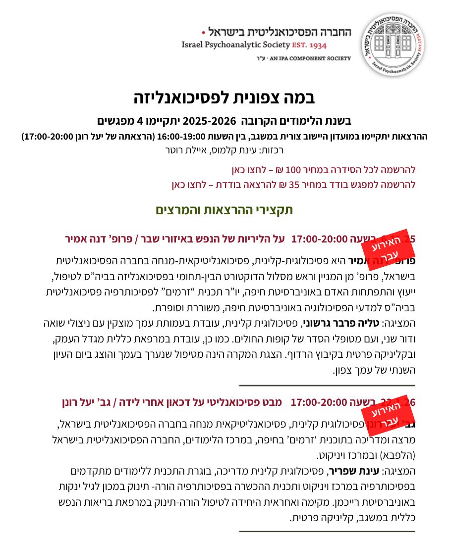 סדרת מפגשים מקוונת | המפגש הבא ב- 26/01/2026