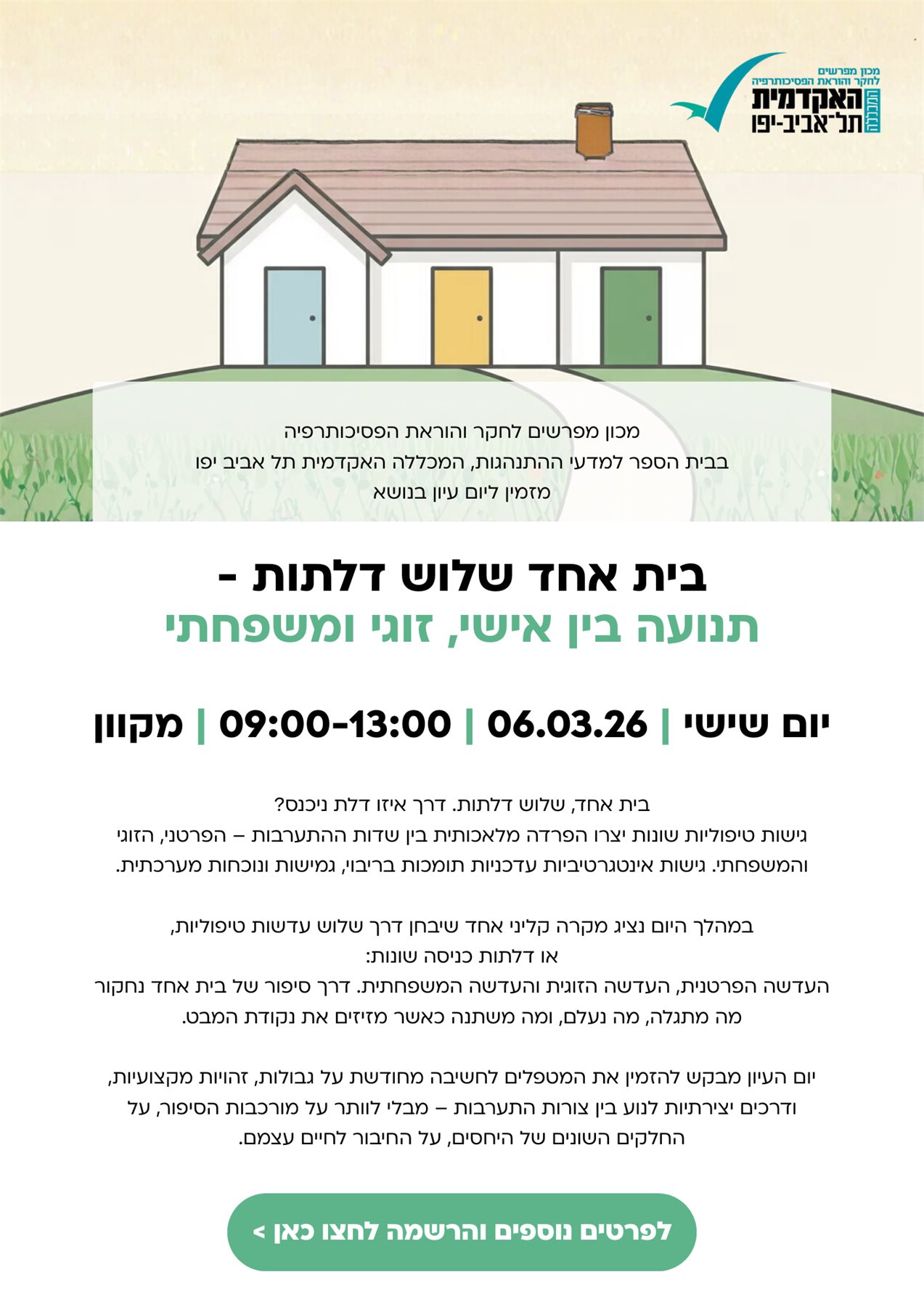 בית אחד שלוש דלתות - תנועה בין אישי, זוגי ומשפחתי