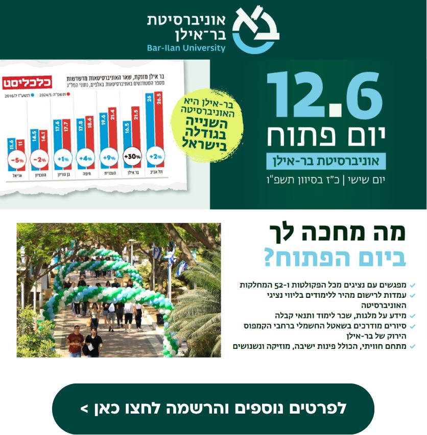 יום פתוח באוניברסיטת בר אילן שנת הלימודים תשפ"ז
