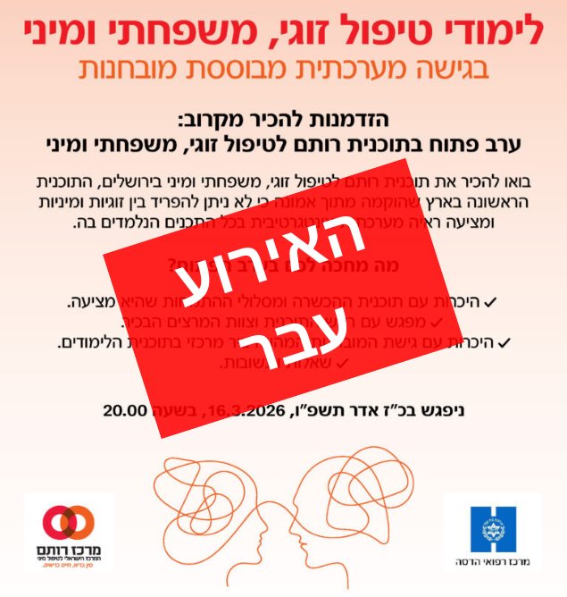 ערב פתוח - שאלות ותשובות על תוכנית ההכשרה לטיפול זוגי משפחתי ומיני