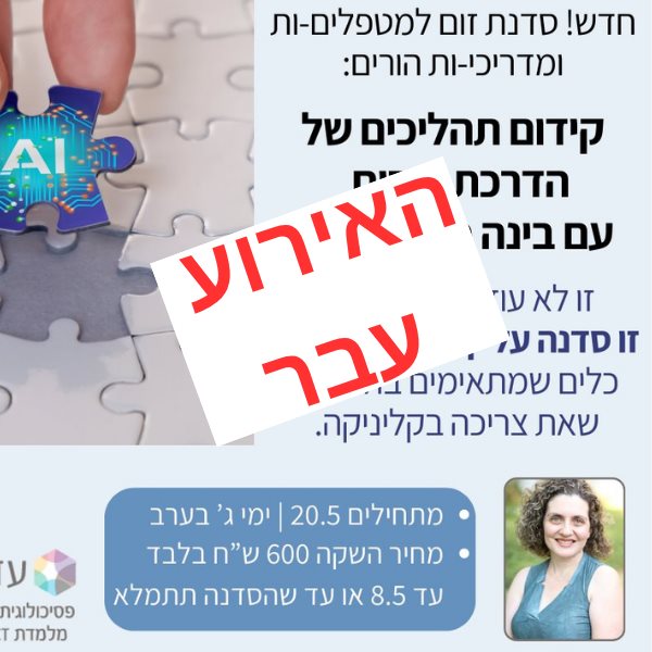 סדרת מפגשים מקוונים המציעה גישות, מודלים והתערבויות שהתגבשו בשדה הטיפולי במענה למגוון קשיים ומצוקות נפשיות, ומטרתה להנגיש לקהילה המקצועית ידע מקצועי שהתפתח סביב אתגרים טיפוליים ספציפיים.