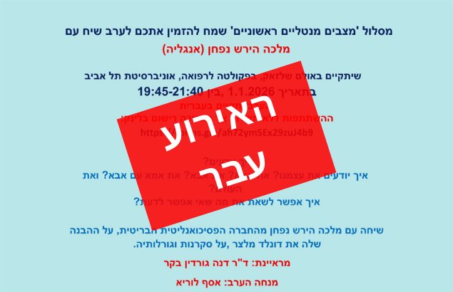 מסלול 'מצבים מנטליים ראשוניים' מזמין לערב שיח עם מלכה הירש-נפחן