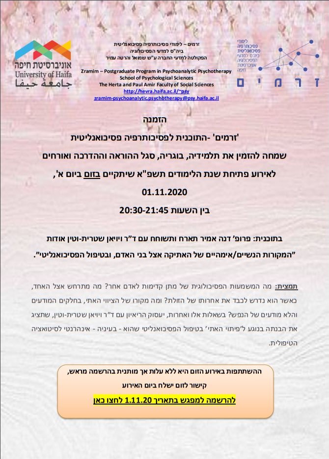 אירוע פתיחת שנת הלימודים - 'זרמים' - התוכנית לפסיכותרפיה פסיכואנליטית