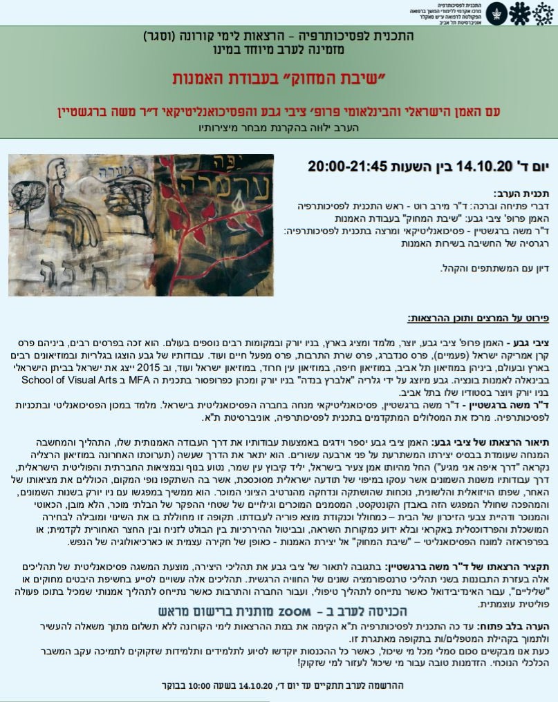 סדרת מפגשים מקוונים המציעה גישות, מודלים והתערבויות שהתגבשו בשדה הטיפולי במענה למגוון קשיים ומצוקות נפשיות, ומטרתה להנגיש לקהילה המקצועית ידע מקצועי שהתפתח סביב אתגרים טיפוליים ספציפיים.