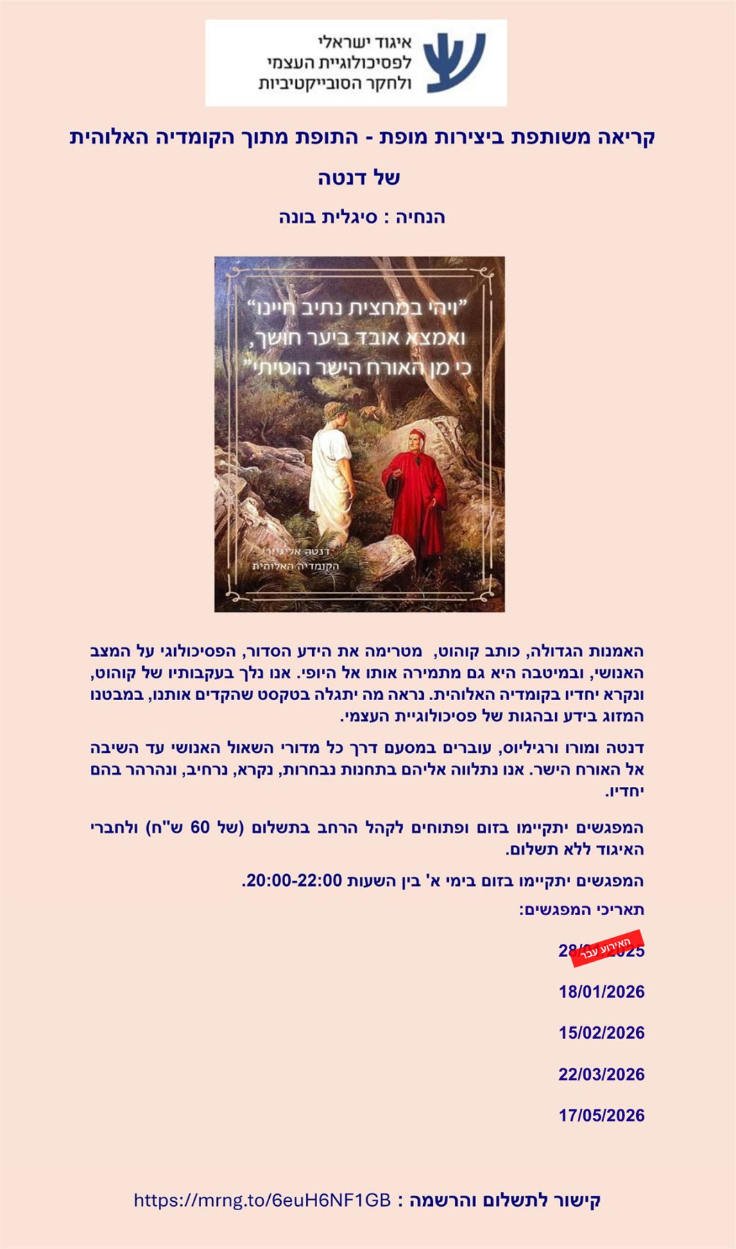 סדרת מפגשים מקוונת | המפגש הבא ב- 12/01/2026
