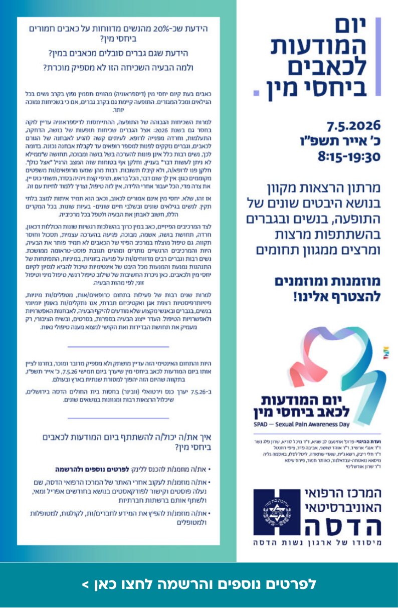 מרתון הרצאות לרגל יום המודעות לכאבים בקיום יחסים - מבט אינטגרטיבי