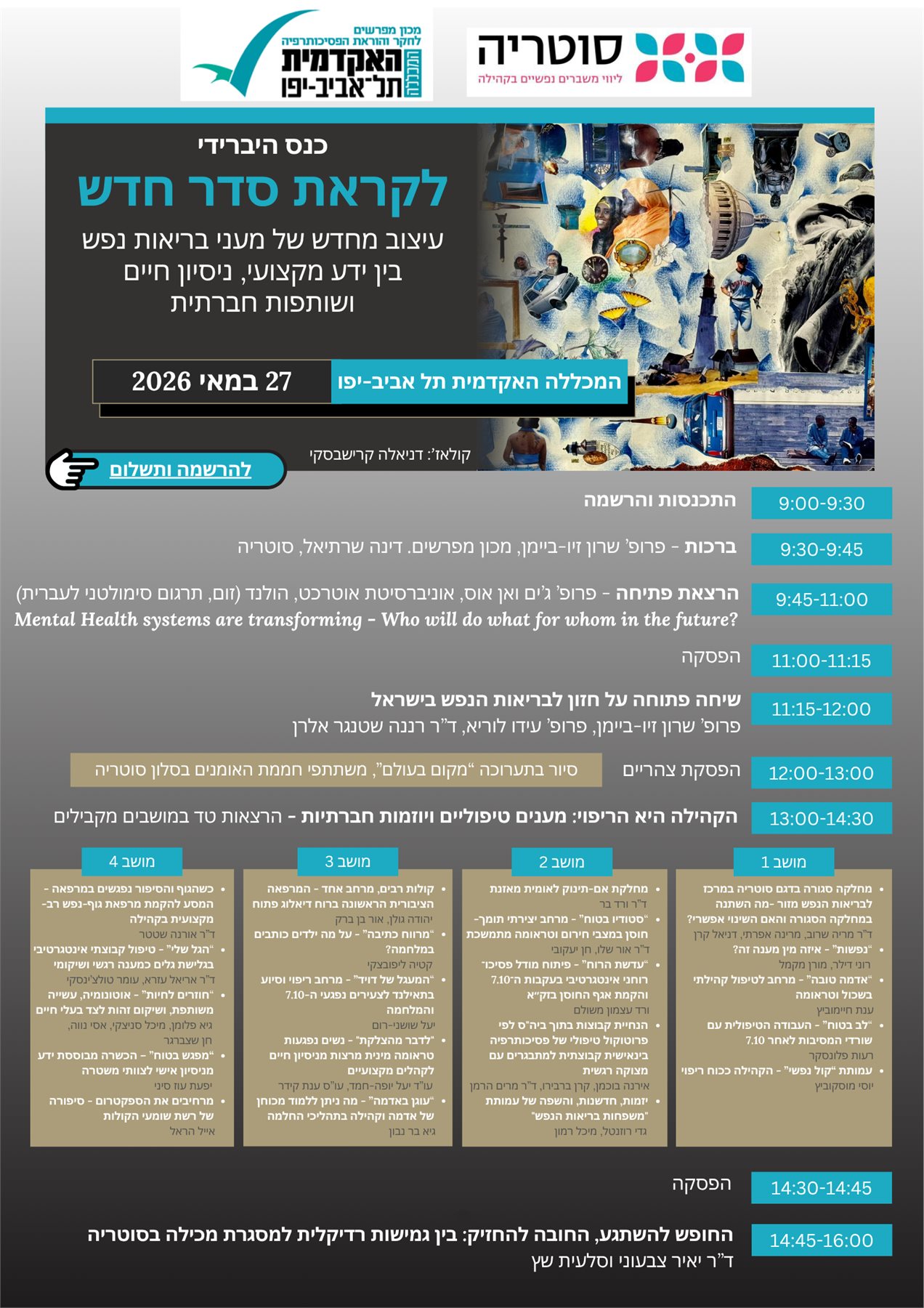 כנס סוטריה - "לקראת סדר חדש": עיצוב מחדש של מעני בריאות נפש