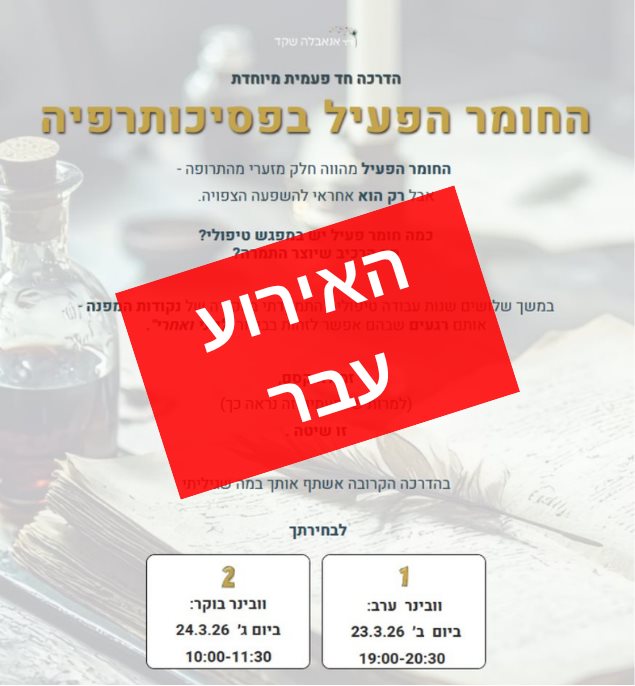 החומר הפעיל בפסיכותרפיה - הדרכה חד פעמית מיוחדת