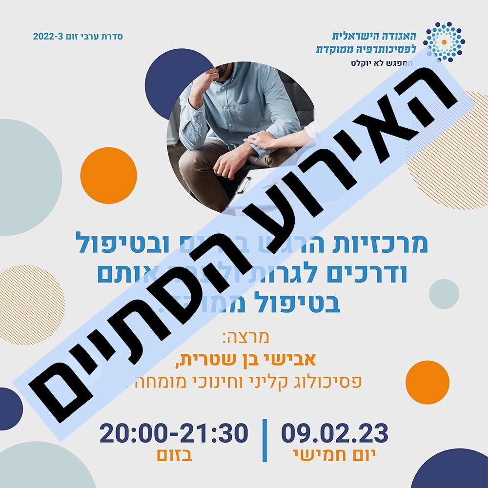 סדרת מפגשים מקוונים המציעה גישות, מודלים והתערבויות שהתגבשו בשדה הטיפולי במענה למגוון קשיים ומצוקות נפשיות, ומטרתה להנגיש לקהילה המקצועית ידע מקצועי שהתפתח סביב אתגרים טיפוליים ספציפיים.