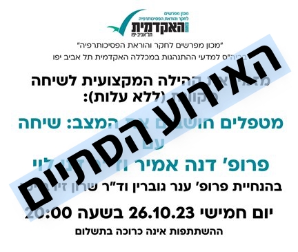 סדרת מפגשים מקוונים המציעה גישות, מודלים והתערבויות שהתגבשו בשדה הטיפולי במענה למגוון קשיים ומצוקות נפשיות, ומטרתה להנגיש לקהילה המקצועית ידע מקצועי שהתפתח סביב אתגרים טיפוליים ספציפיים.
