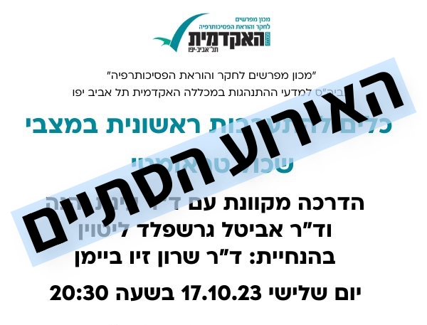 סדרת מפגשים מקוונים המציעה גישות, מודלים והתערבויות שהתגבשו בשדה הטיפולי במענה למגוון קשיים ומצוקות נפשיות, ומטרתה להנגיש לקהילה המקצועית ידע מקצועי שהתפתח סביב אתגרים טיפוליים ספציפיים.
