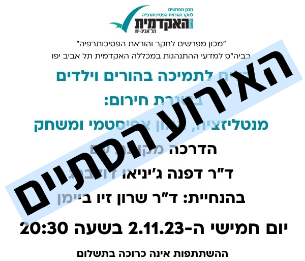 סדרת מפגשים מקוונים המציעה גישות, מודלים והתערבויות שהתגבשו בשדה הטיפולי במענה למגוון קשיים ומצוקות נפשיות, ומטרתה להנגיש לקהילה המקצועית ידע מקצועי שהתפתח סביב אתגרים טיפוליים ספציפיים.