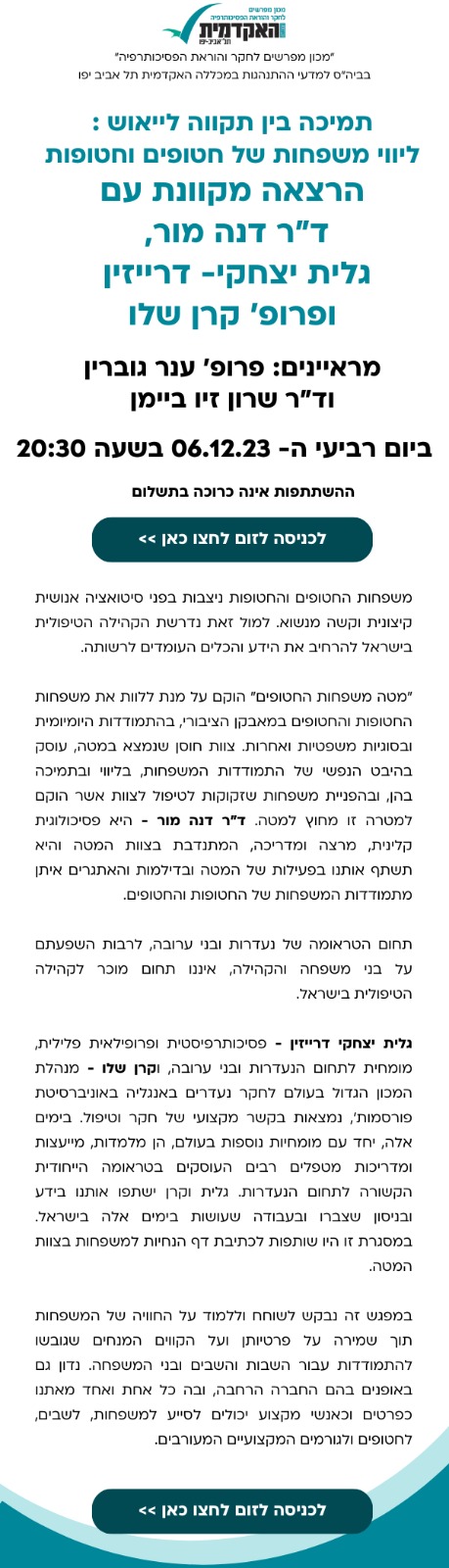 תמיכה בין תקווה לייאוש: ליווי משפחות של חטופים וחטופות