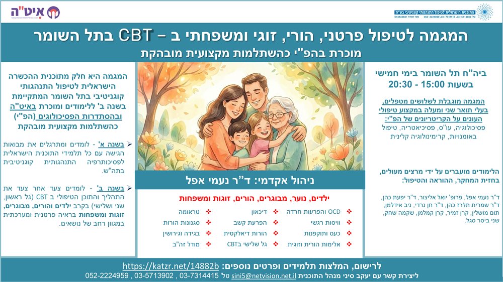 המגמה לטיפול פרטני, הורי, זוגי ומשפחתי ב-CBT