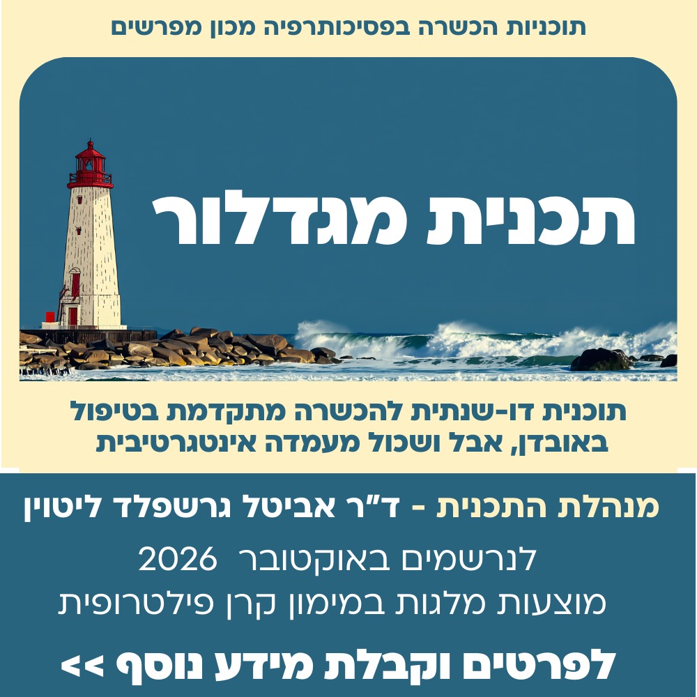 למול תחושות אלו והמציאות המטלטלת, ריכזנו עבורכם בגיליון הנוכחי שלל תכנים שנולדו מהניסיון הכואב של השנתיים האחרונות, אשר עשויים להיות לעזר בימים אלו – מעקרונות והתמקמות טיפולית בעת דחק וחירום ועד כלים מעשיים והתערבויות ממוקדות המותאמות לימי מלחמה.