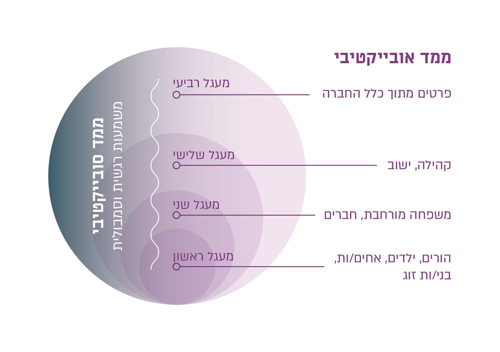 על מנת לאפשר הבחנה רגישה, פתוחה ומודעת יותר להיקפי השכול אנו מציעים לראות את מרחב השכול באופן רב ממדי, מסועף ודינאמי, כמובנה מממד אובייקטיבי וממד סובייקטיבי ומארבעה מעגלי שכול: משפחה, קהילה, יישוב, פרטים (מקי"ף). בעוד הממד האובייקטיבי מוכר כיוון שהוא מבוסס על התפקיד (role) של האדם עבור הנפטר (אב, סבתא, חבר צוות בצבא), הרי שהממד הסובייקטיבי הוא דינאמי ומתייחס למשמעות האישית הייחודית, ולעיתים הקולקטיבית, המיוחסת לקשר עם הנפטר, בהקשר ריגשי וסימבולי.